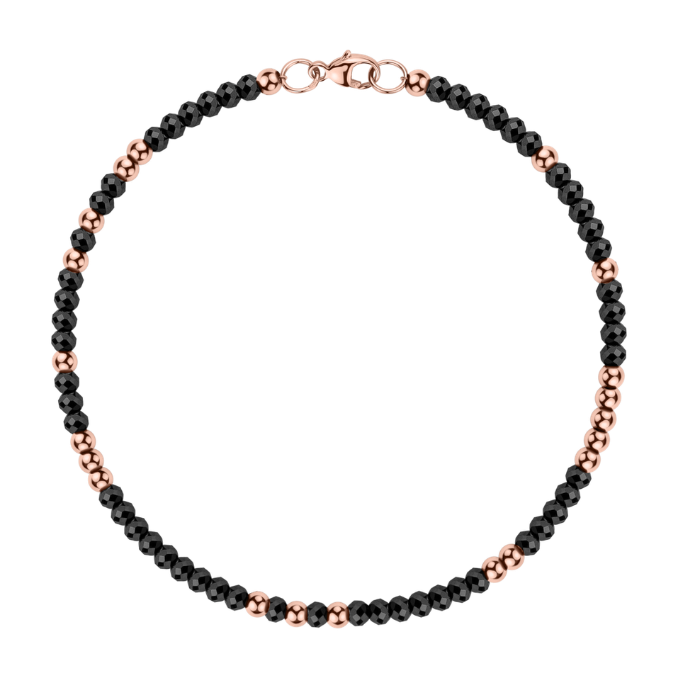 A 14ct rose gold bracelet with black diamonds is the perfect combination of simplicity and elegance. The clean design and sparkling diamonds will impress everyone who sees it.