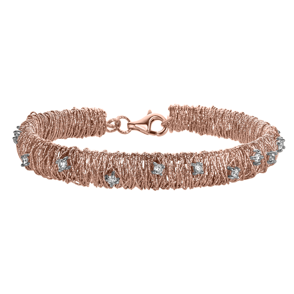 You'll always look confident with this 14ct rose and white gold and diamond bracelet. Its stunning shapes and colors will emphasize your sophistication and taste. The highest quality diamonds on this bracelet create a sparkling play of light that will captivate any admirer. The jewelry is part of the Charming collection.