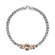 Every ray of light seems brighter when reflected by this gorgeous 14ct white, rose and yellow gold diamond bracelet. One jewel - a thousand moments of endless glitter. The jewelry is part of the Essential collection.