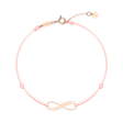 Tell her how much she means to you. You will definitely succeed with this unique ALOve Infinity bracelet with a coloured string and an eye-catching infinity symbol made of white, yellow or rose 14K gold and adorned with a diamond.