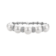 A beautiful 18ct white gold diamond and freshwater white pearl bracelet is a piece of art. This piece of jewelery has been designed to provide admiration and wonder to its wearer. The white pearl gives the diamond jewelry a mystery and mystique that enchants everyone. The jewelry is part of the Ocean & River collection.
