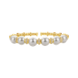 Bracelet in 18ct yellow gold with diamonds and a freshwater white pearl symbolizing beauty and purity. Its seductive shimmer is like a celebration of success and elegance, ideal for those who value refinement and style. The jewelry is part of the Ocean & River collection.
