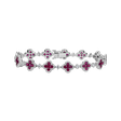 This exquisite 18ct white gold diamond and ruby bracelet is a fine example of craftsmanship. Its sophisticated design and radiant shine are a symbol of endless elegance and luxury. The jewelry is part of the Mirage collection.