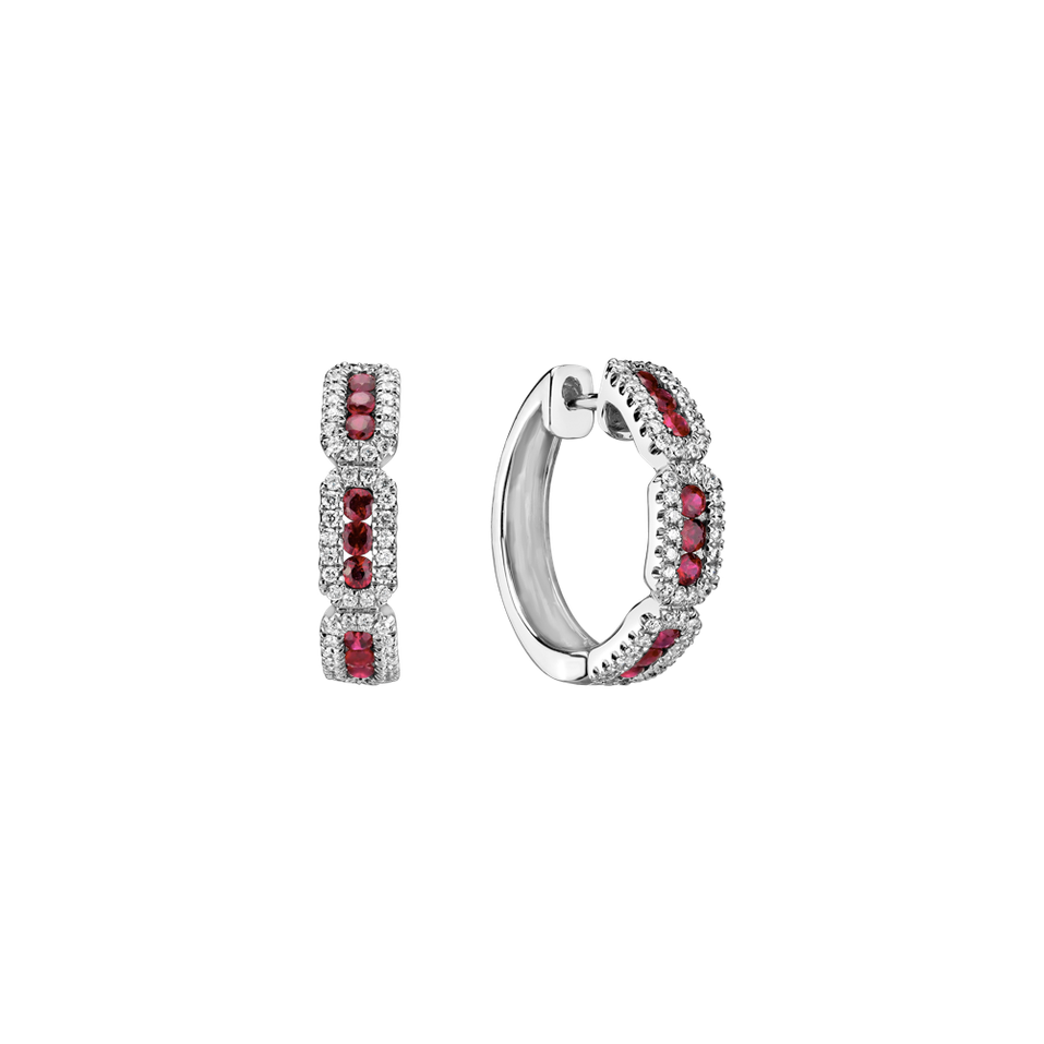Your every move will now be accompanied by the mesmerizing sparkle of diamonds carefully set in exquisite 18ct white gold earrings that adorn a ruby. These earrings are full of elegance and sophistication, they are perfect for emphasizing your uniqueness. The jewelry is part of the Creoles collection.