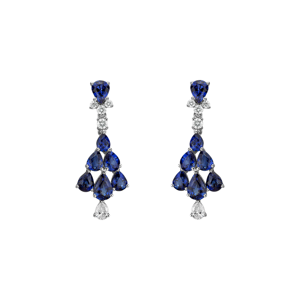 Delicate and perfectly balanced 14ct white and rose gold diamond earrings and 18ct white gold diamond and sapphire earrings promise a message of everlasting beauty and spiritual harmony. The jewelry is part of the Charming collection.
