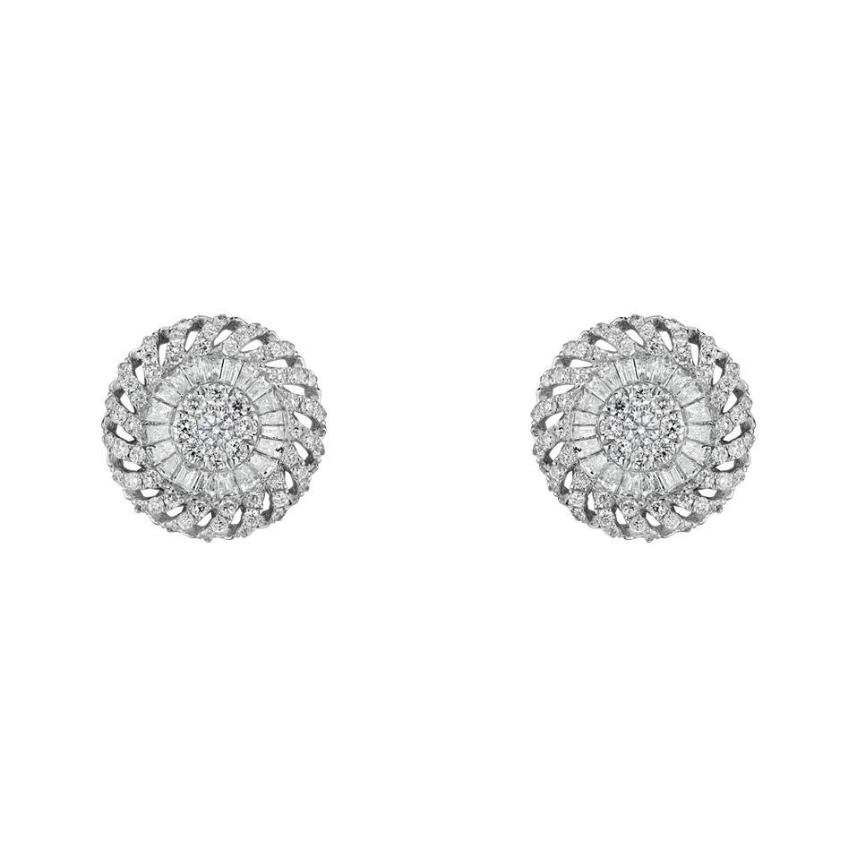 Elegant 18ct white gold earrings decorated with sparkling diamonds are a symbol of luxury and sophistication. An ideal gift for a woman who appreciates precision and jewelry art. The jewelry is part of the Glamour Edge collection.