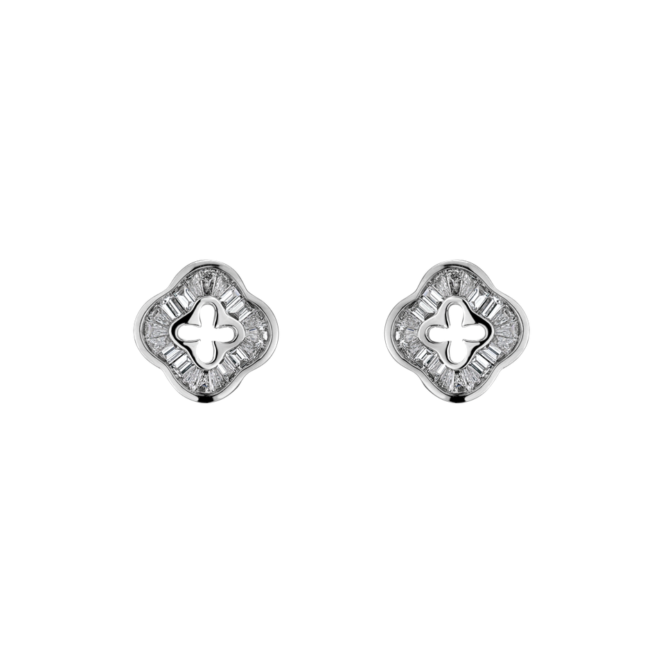 Earrings in 18ct white gold, decorated with purity of diamonds, are an expression of elegance and modern design. Their imaginative appearance and subtle shine are a symbol of endless beauty. The jewelry is part of the Glamour Edge collection.