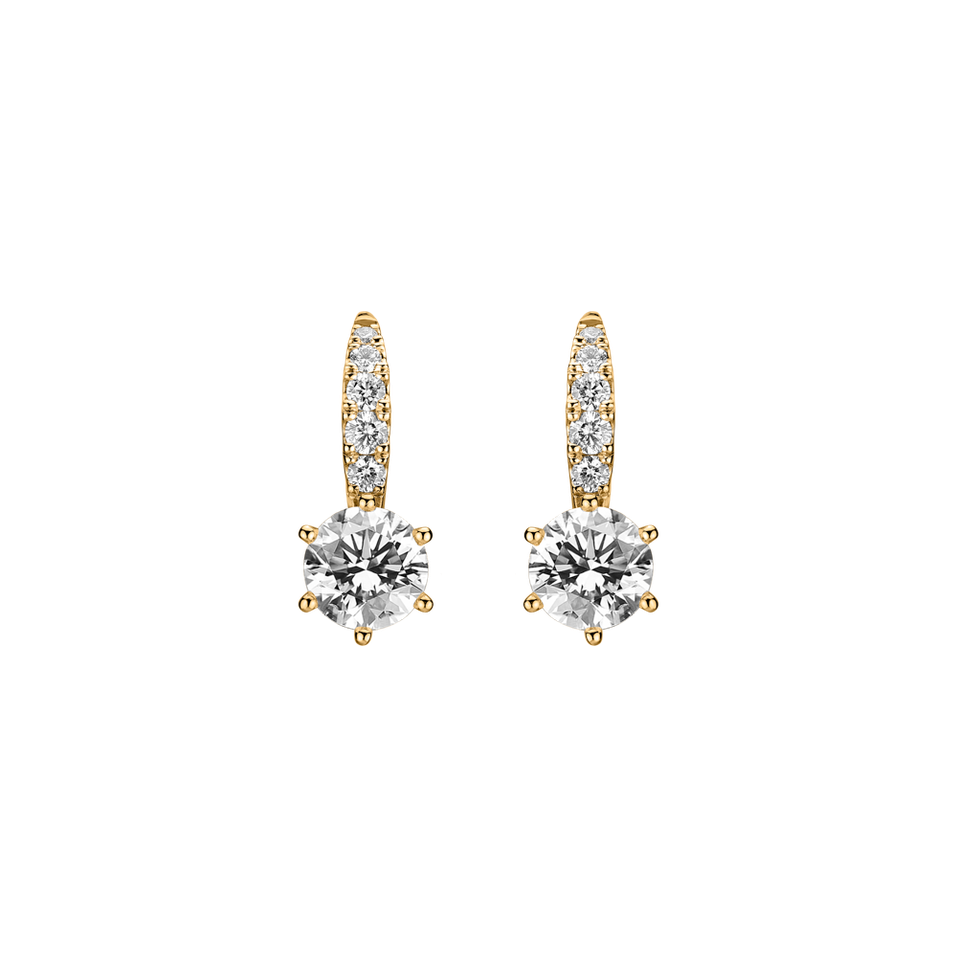 Delicate earrings in 14ct yellow gold with diamonds are born of elegance. The diamonds that adorn them are like dewdrops on a flower - beautiful and incredibly rare. Express your uniqueness with these earrings. The jewelry is part of the Luxury Classic collection.