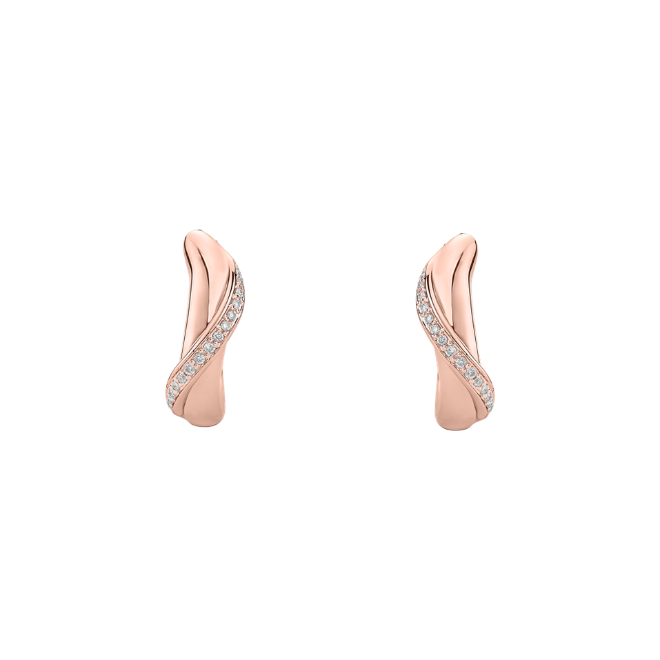 Elegant 14ct rose gold earrings with diamonds are a symbol of luxury and beauty. Their design in rose gold shines with the beauty of diamonds that add a beautiful shine. The jewelry is part of the Essential collection.