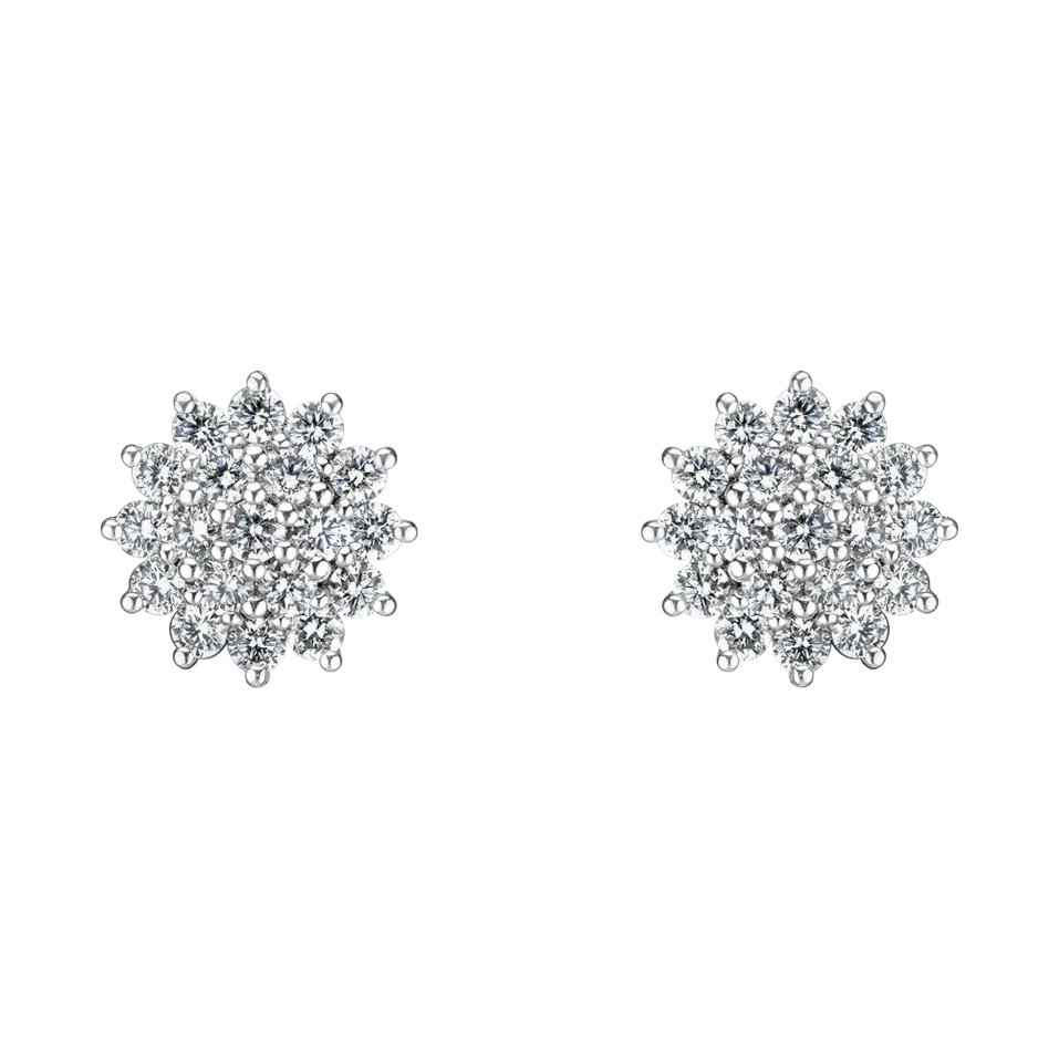 Diamond studded earrings in 14ct white gold are the perfect expression of your unique taste. Their radiant appearance is a symbol of ageless beauty, tremendous strength and reverence for gold. The jewelry is part of the Starlet collection.