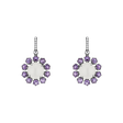 These 18ct black gold diamond, white moonstone and African amethyst earrings are like a fairy tale full of beauty and immense elegance. Every detail of these earrings has been carefully crafted to immerse you in a world of beauty and wonder. Become the heroine of your own fairy tale. The jewelry is part of the Blossoms collection.