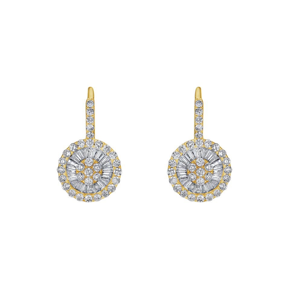 18ct yellow gold earrings illuminated with sparkling diamonds are a work of art. Their delicate and elegant design expresses luxury and exclusivity.