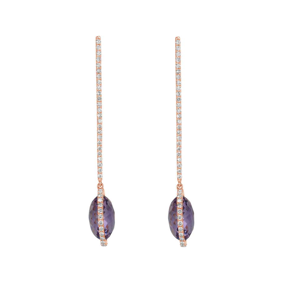 Subtlety and elegance come together in these 18ct rose gold diamond and brazil amethyst earrings that celebrate your every gesture. The jewelry is part of the Fantasy collection.
