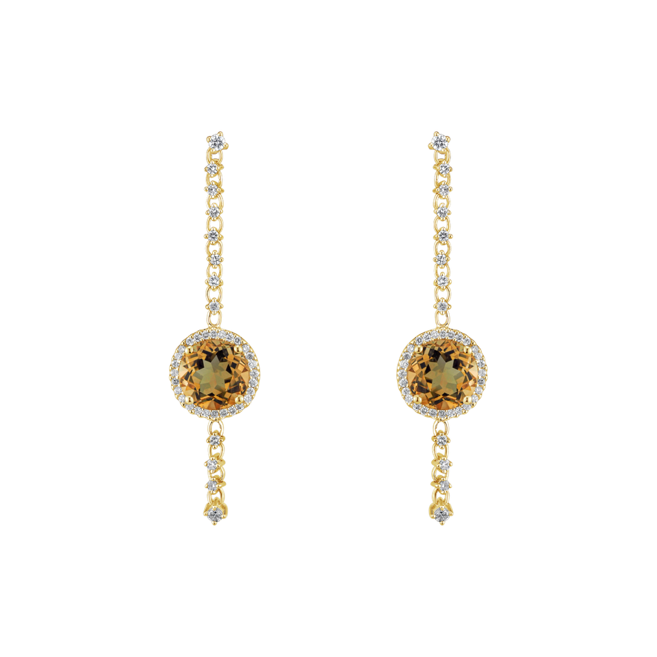 These 18ct yellow gold diamond and citrine earrings are the ultimate piece of art. Their design is well thought out and so extremely elegant. The diamonds and citrine on these earrings create a sparkling play of light that enchants everyone who looks at them. The jewelry is part of the Fantasy collection.