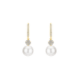 The marriage of 14ct yellow gold, diamonds and freshwater white pearls in these earrings creates a bold symbiosis that reflects a strong personality and confident elegance. Luxury jewelry like these will not only emphasize your uniqueness, but also bring into your life a unique touch of exclusivity and nobility that you deserve. The jewelry is part of the Ocean & River collection.