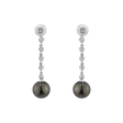 Courage and tenderness radiate from these 18ct white gold diamond and sea black pearl earrings that hold stories of unadulterated femininity. The jewelry is part of the Ocean & River collection.