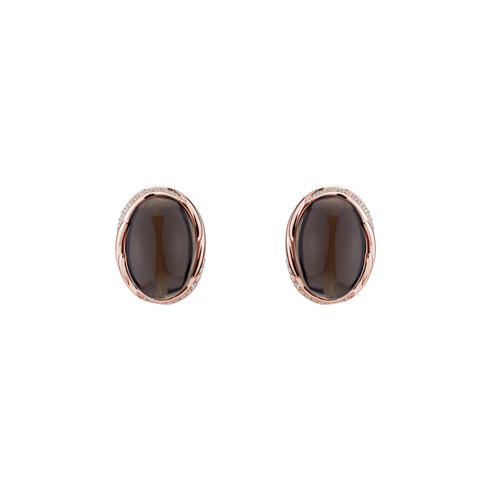 Earrings 14ct rose gold with diamonds and smoky quartz, which are like a symphony of light and elegance. Their exquisite design represents a path to success, full of beauty and soft tones. The jewelry is part of the Blossoms collection.