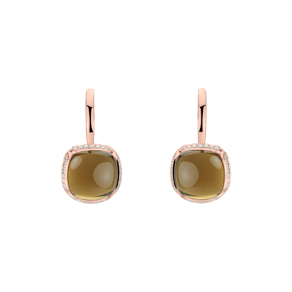 Delicate and perfectly balanced 14ct white and rose gold diamond and cognac quartz earrings promise a message of everlasting beauty and spiritual harmony. The jewelry is part of the Blossoms collection.