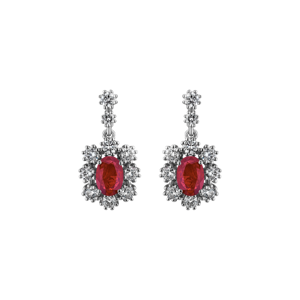 Fragility and strength combine in these 18ct white gold earrings with diamonds and a perfect ruby - a bold contribution to your infinite beauty. The jewelry is part of the Diana collection.