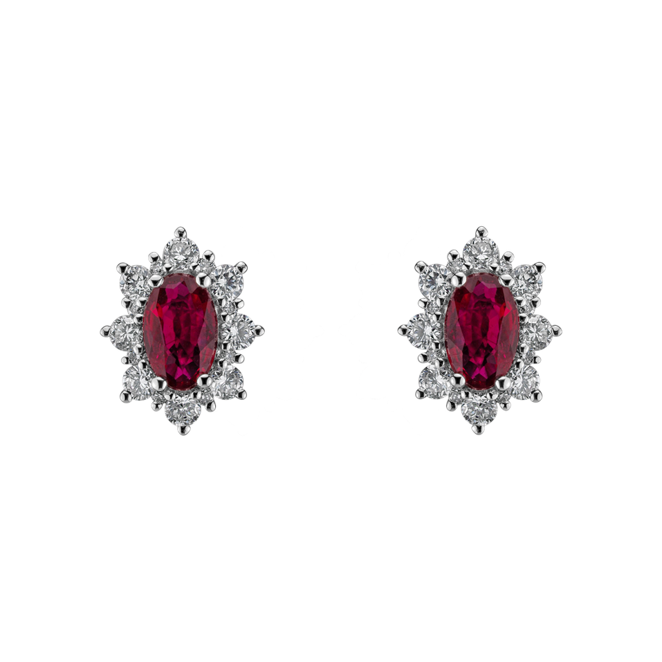 14ct white gold diamond and ruby earrings are an expression of both romance and strength. These earrings combine the beauty of diamonds with the sparkle of ruby, creating blank paper for an endless story of love and passion. The jewelry is part of the Diana collection.