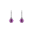 Beautiful 14ct white gold earrings with shiny diamond and pink sapphire - a reflection of beauty and art in white shine with a touch of pink sapphire for ladies who want to emphasize their charm and grace. The jewelry is part of the Classic First collection.