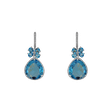 Exquisitely tuned earrings in 18ct white gold adorned with brilliant diamonds and swiss topaz are a solemn expression of the depth of your feelings and an opulent sign of your taste. The jewelry is part of the Fantasy collection.