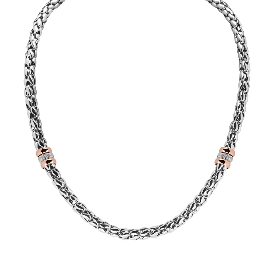 Add a touch of luxury right around your neck with this 14ct white and rose gold diamond necklace. Its sparkling stones create a clear path to endless adventure and the light of hope in your life. The jewelry is part of the Essential collection.