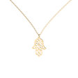 A minimalist white, yellow or rose 14K gold ALOve necklace featuring a symbolic Hamsa (hand of Fatima) adorned with a diamond. A luxurious piece of jewellery and a protective talisman.