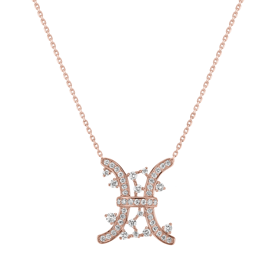 A 14ct rose gold diamond necklace is like a secret treasure found in the hidden world. Its sparkling diamonds are like magical amulets that bring luck and success. You will surely appreciate them. The jewelry is part of the Aphrodité collection.