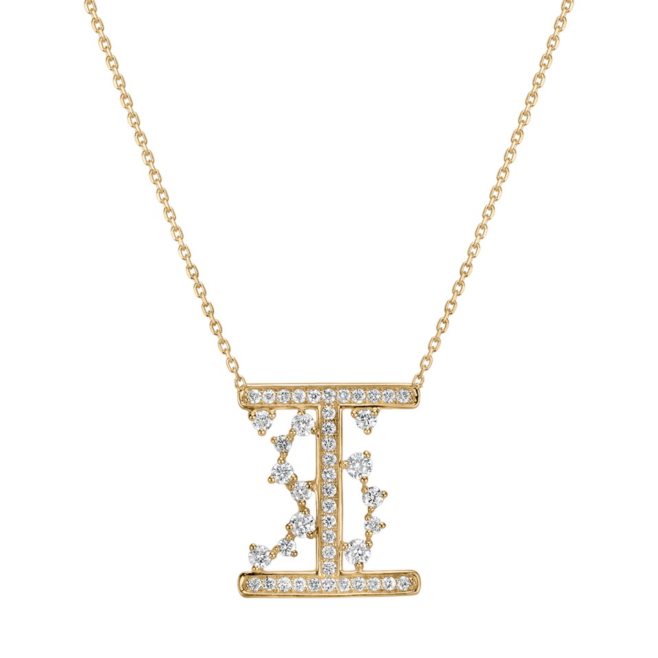 This 14ct yellow gold diamond necklace is a masterpiece of fine art. Its clean lines and dazzling glitter are like the surface of a calm lake under a starry sky. The jewelry is part of the Aphrodité collection.