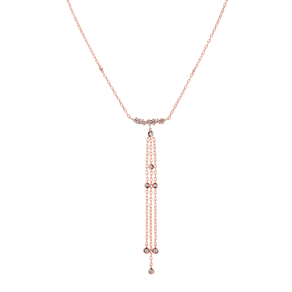 This 18ct rose gold diamond necklace is an elegant and timeless piece of jewelry that will accentuate your beauty and delicate taste. The jewelry is part of the Charming collection.