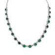 The 18ct white gold diamond and emerald necklace is like the treasure of a lost kingdom. Its glittering diamonds and rare emerald are like the most valuable jewels symbolizing luxury, power and alluring beauty. The jewelry is part of the Royal collection.