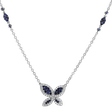 Your every move will now be accompanied by the mesmerizing sparkle of diamonds and sapphires carefully set into a gorgeous 18ct white and black gold necklace. This gem is a symbol of elegance and uniqueness. The jewelry is part of the Flowers collection.