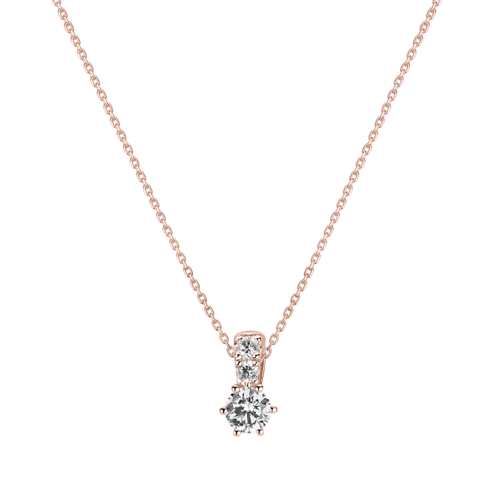 This 14ct rose gold diamond pendant is the perfect accessory for women who value luxury and beauty. Its elegant design and sparkling diamonds make it a piece of jewelry that will enchant you with its charm. The jewelry is part of the Luxury Classic collection. The older sister of the Classic First collection, boasting even more dazzling glitter. Luxury Classic gives the central stones the main word, the sparkle of which is supported by the installation of smaller diamonds. In it you will find delicate and clean jewelry as well as bolder pieces with colored gems. Everyone can choose their dream accessory or desired engagement ring here. The ALO diamonds company has been producing jewelry from diamonds and precious stones in the Czech Republic for almost 30 years. Each piece of jewelry is therefore original and is also provided with a certificate of authenticity and delivered in a luxurious package. Whether you choose an engagement ring or a diamond bracelet or necklace, you are not only giving a piece of jewelry, but also a smart investment. The pendant is without a chain. The chain can be ordered at posta@alo.cz