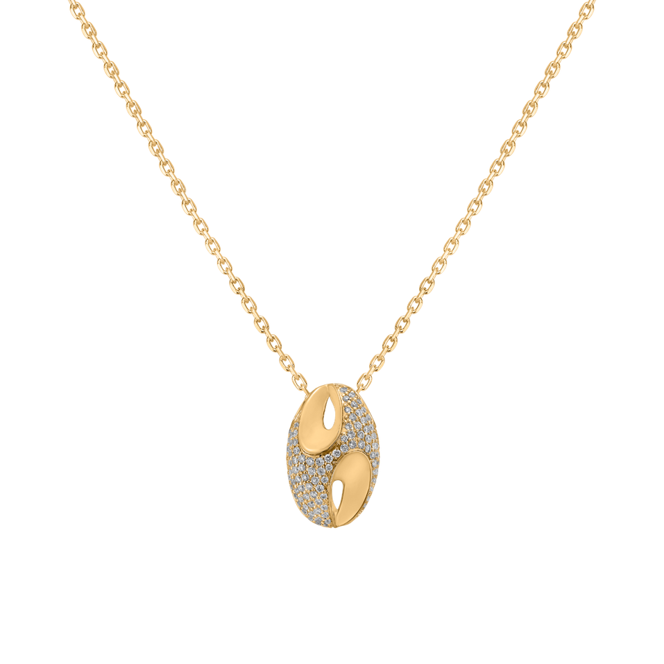A 14ct yellow gold diamond pendant that is an expression of never-ending deep beauty. Its radiance is like the surface of water, reflecting the sun of success and fulfilled dreams. The jewelry is part of the Charming collection. Let yourself be carried away by the beauty and charming glitter. The festive jewelry of the Charming collection is decorated with a mosaic of sapphires, emeralds, rubies, tanzanites and diamonds of all colors. Bracelets, necklaces and earrings are unique not only in their elegant shape, but also in their workmanship. Quite unusually, they do not have one central stone, but many smaller and larger stones. With their endless reflections, they never cease to attract attention, which is why they are perfect for celebrations, balls and dance-filled evenings. The ALO diamonds company has been producing jewelry from diamonds and precious stones in the Czech Republic for almost 30 years. Each piece of jewelry is therefore original and is also provided with a certificate of authenticity and delivered in a luxurious package. Whether you choose an engagement ring or a diamond bracelet or necklace, you are not only giving a piece of jewelry, but also a smart investment. The pendant is without a chain. The chain can be ordered at posta@alo.cz