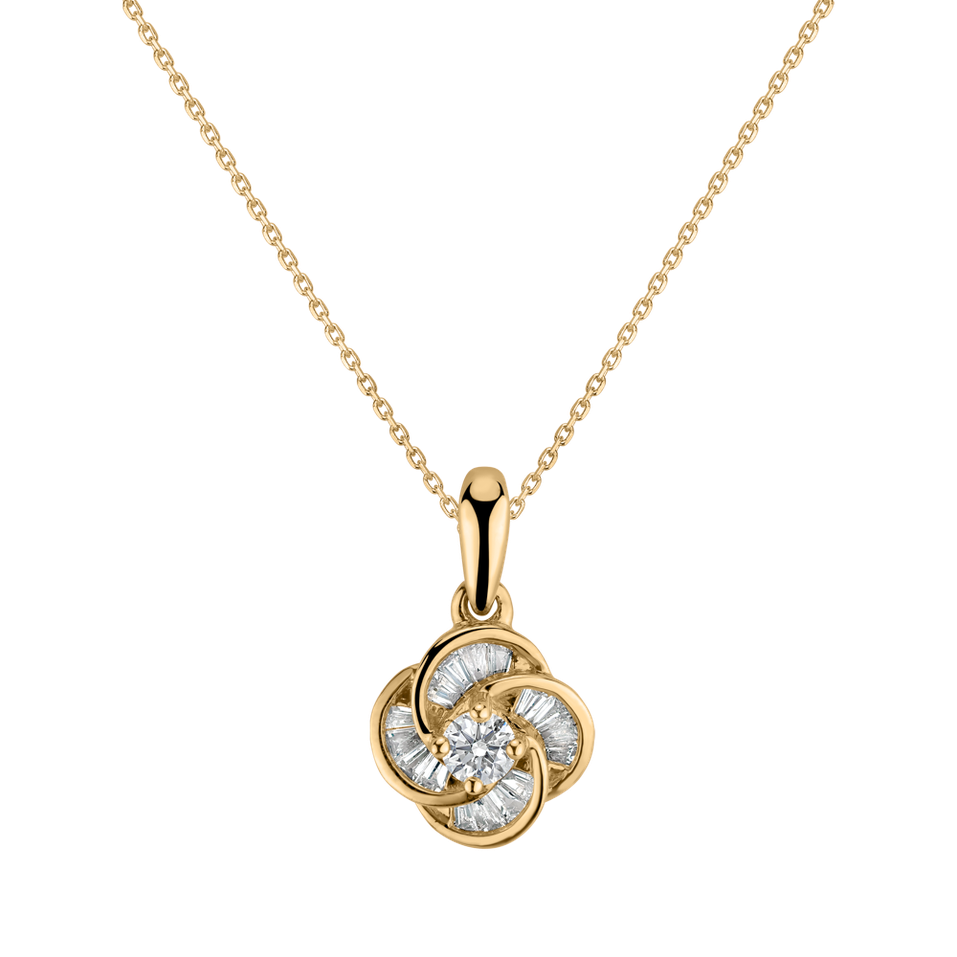 Experience luxury and elegance with an 18ct yellow gold pendant decorated with diamonds. Each stone is carefully selected and processed to emphasize the beauty of yellow gold. This pendant is not only a symbol of your success, but also a manifestation of your taste and sophistication. The jewelry is part of the Flowers collection. A blossoming garden that grew out of gold and diamonds. This is the Flowers collection, which plays with the elegance of flowers and leaves. Both colored and clear diamonds are set in yellow, white and rose gold shaped into charming traditional and exotic flowers. ALO diamonds bracelets, earrings, rings and necklaces in this collection are most often decorated with the queen of all flowers roses. The ALO diamonds company has been producing jewelry from diamonds and precious stones in the Czech Republic for almost 30 years. Each piece of jewelry is therefore original and is also provided with a certificate of authenticity and delivered in a luxurious package. Whether you choose an engagement ring or a diamond bracelet or necklace, you are not only giving a piece of jewelry, but also a smart investment. The pendant is without a chain. The chain can be ordered at posta@alo.cz