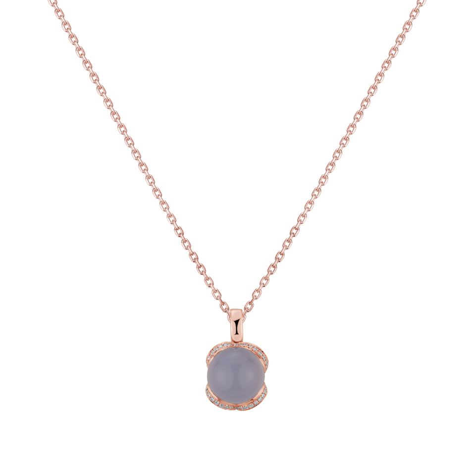 A collection inspired by blossoming orchards and gardens. The main role in it is played by colored gemstones with semi-circular cabochon cut. Blue topaz, purple amethyst, green chalcedony and other gemstones are set in white, yellow and rose gold rings, earrings and pendants. The round shapes of the jewelry and the stones themselves are the embodiment of timelessness and delicate feminine energy. The ALO diamonds company has been producing jewelry from diamonds and precious stones in the Czech Republic for almost 30 years. Each piece of jewelry is therefore original and is also provided with a certificate of authenticity and delivered in a luxurious package. Whether you choose an engagement ring or a diamond bracelet or necklace, you are not only giving a piece of jewelry, but also a smart investment. The pendant is without a chain. The chain can be ordered at posta@alo.cz