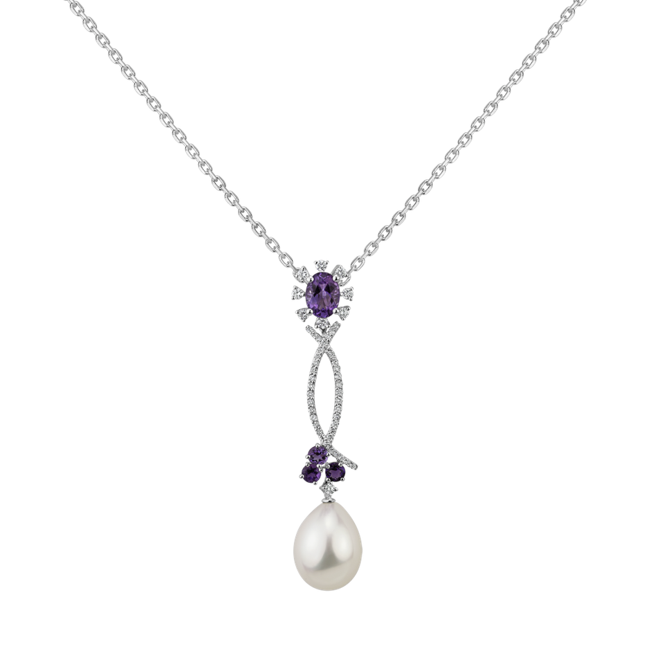 Diamond pendant with Pearl and Amethyst Secret of Underwater Flowers