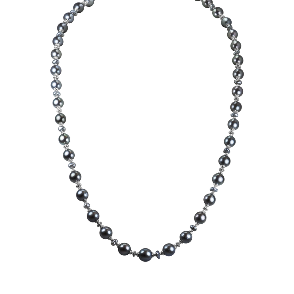 Pearls in your jewelry box - purity, timelessness and beauty. A beautiful 18ct white gold necklace with sea black pearls will impress with its unique design and add a touch of romance to your look. The jewelry is part of the Ocean & River collection.
