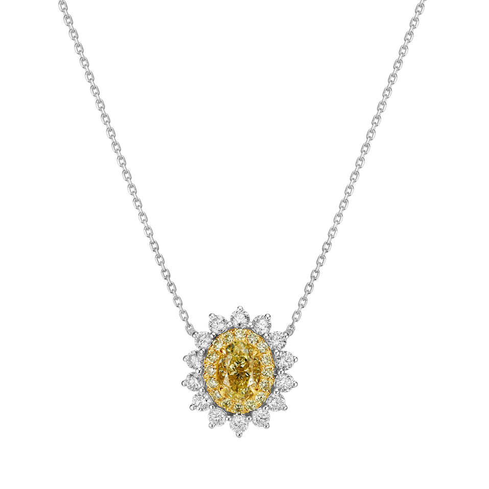 The 18ct white and yellow gold necklace, decorated with yellow diamonds, is a symbol of luxury and elegance. Its exceptional design and beautiful shine will captivate you. The jewelry is part of the Sunshine collection.