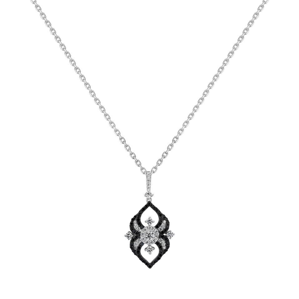 The subtle beauty of this 18ct white and black gold pendant with black diamonds is a celebration of life's achievements. Its unsurpassed shine and perfect appearance remind you of an unquenchable desire to achieve your dreams. The jewelry is part of the Charming collection. Let yourself be carried away by the beauty and charming glitter. The festive jewelry of the Charming collection is decorated with a mosaic of sapphires, emeralds, rubies, tanzanites and diamonds of all colors. Bracelets, necklaces and earrings are unique not only in their elegant shape, but also in their workmanship. Quite unusually, they do not have one central stone, but many smaller and larger stones. With their endless reflections, they never cease to attract attention, which is why they are perfect for celebrations, balls and dance-filled evenings. The ALO diamonds company has been producing jewelry from diamonds and precious stones in the Czech Republic for almost 30 years. Each piece of jewelry is therefore original and is also provided with a certificate of authenticity and delivered in a luxurious package. Whether you choose an engagement ring or a diamond bracelet or necklace, you are not only giving a piece of jewelry, but also a smart investment. The pendant is without a chain. The chain can be ordered at posta@alo.cz