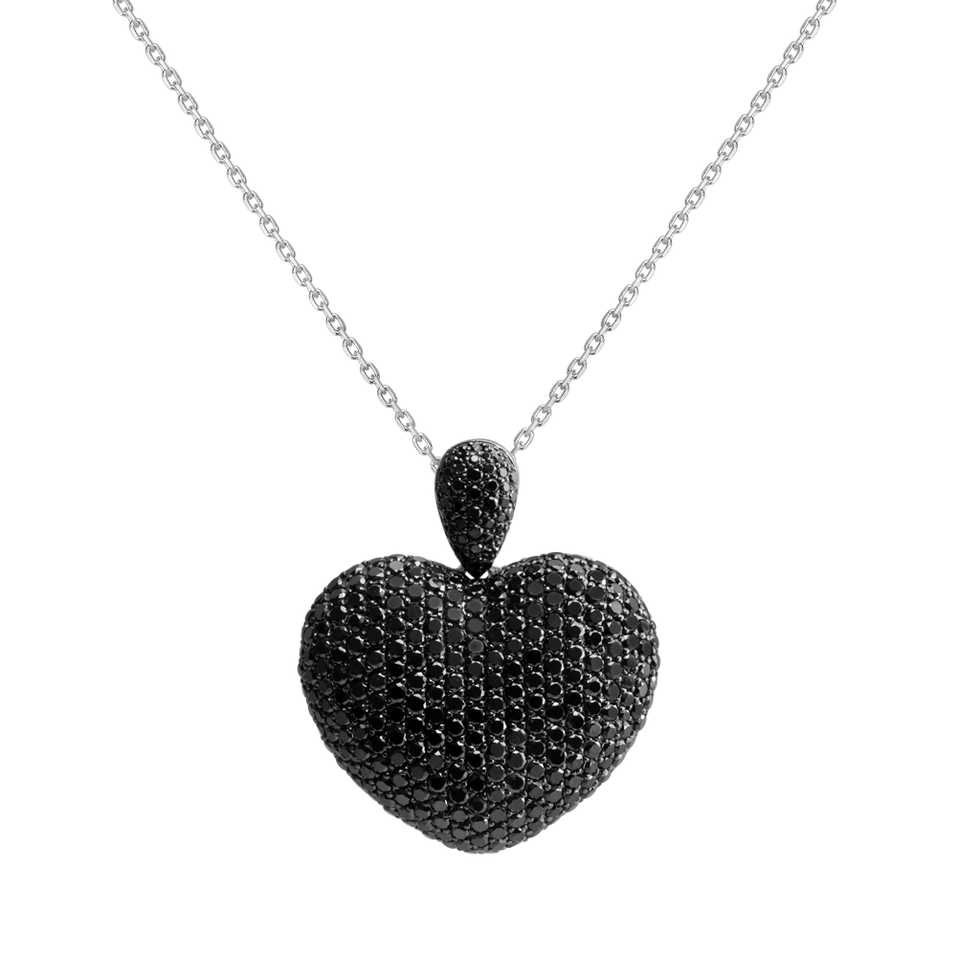 This 14ct white and black gold pendant set with black diamonds is like a mysterious evening story full of mystery and magic. Its unique design is a symbol of inner strength and endless elegance. The jewelry is part of the Hearts collection. Diamonds are simply a matter of hearts. And the Hearts collection is inspired by the heart. Cut diamonds of all sizes and colors are set in yellow, white and rose gold in various designs of the symbol of love. Like love, diamonds are eternal and very valuable. The ALO diamonds company has been producing jewelry from diamonds and precious stones in the Czech Republic for almost 30 years. Each piece of jewelry is therefore original and is also provided with a certificate of authenticity and delivered in a luxurious package. Whether you choose an engagement ring or a diamond bracelet or necklace, you are not only giving a piece of jewelry, but also a smart investment. The pendant is without a chain. The chain can be ordered at posta@alo.cz