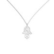 A minimalist white, yellow or rose 14K gold ALOve necklace featuring a symbolic Hamsa (hand of Fatima) adorned with a diamond. A luxurious piece of jewellery and a protective talisman.