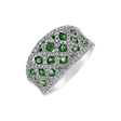 Elegant ring in 18ct white gold, decorated with diamonds and green garnet, is a symbol of sophistication and timeless beauty. Its glossy surface and imaginative design represent perfection in every detail. The jewelry is part of the Charming collection.