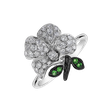 Fall in love with the elegance of this 18ct white gold diamond and green garnet ring, which reminds you every moment that magical moments can be captured and worn on your hand. The jewelry is part of the Flowers collection.