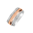 Rose gold and diamonds combine beauty and elegance. A symbol of luxury and originality, this 18ct white and rose gold diamond ring is a great addition to any evening outfit. The jewelry is part of the Essential collection.
