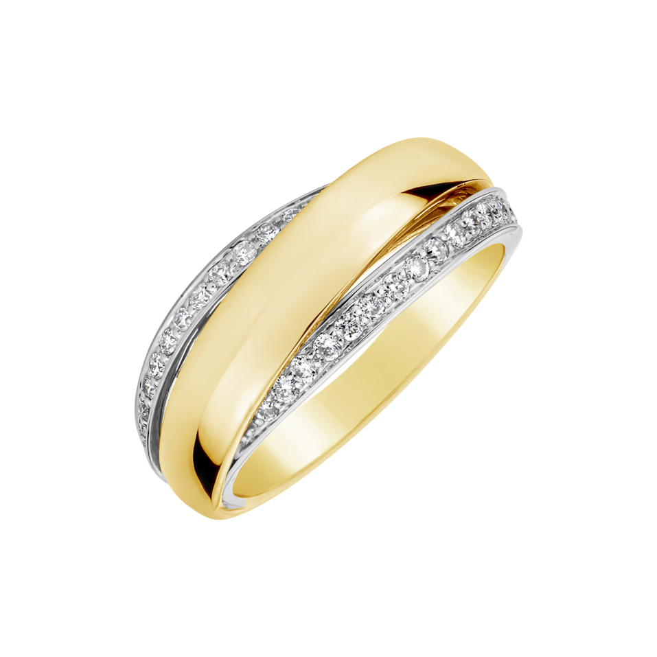 Reflecting strength and courage through each diamond, this romantic 14ct yellow and white gold diamond ring is a clear expression of your determination and sense of perfection. The jewelry is part of the Essential collection.