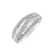 Fresh jewelry set with precious stones of unique shapes. Diamonds, sapphires, emeralds and other luxuriously colored central stones cut into a baguette shape are complemented by white, yellow or rose gold. The jewelry looks very elegant and exudes uniqueness.