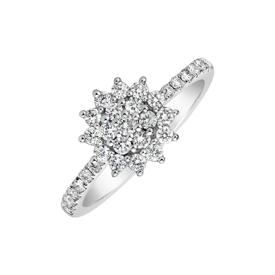 A diamond set ring in 18ct white gold is the perfect expression of your unique taste. Its radiant appearance is a symbol of ageless beauty, tremendous strength and reverence for gold. The jewelry is part of the Starlet collection.