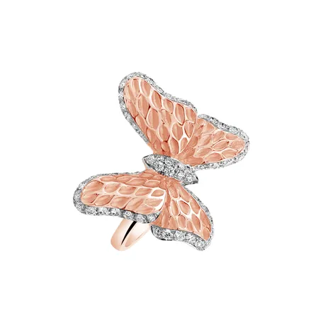 This 18ct white and rose gold diamond ring is the perfect combination of luxury and elegance. Its opulent design and glittering diamonds will make everyone who sees you with this unique piece of jewelry marvel at your wealth. The jewelry is part of the Flowers collection.